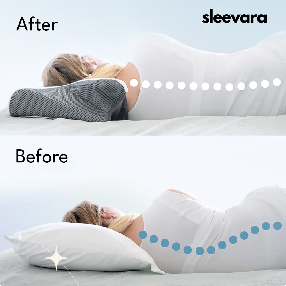 - Aligns your neck and spine to reduce tension and morning stiffness.